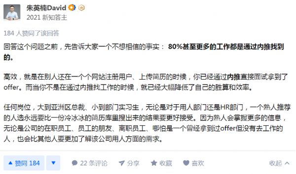 后来在国内大企业工作,发现内推比例依然高得吓人。