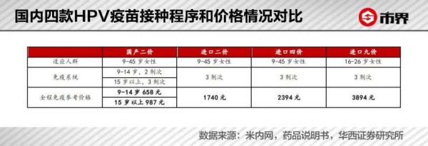 而国产万泰生物的二价HPV疫苗(馨可宁)的每针接种价格则低至364元,从经济成本来看,万泰生物二价HPV疫苗全程接种费用即使是三针也不到千元,658元(9-14 岁,两针),987元(15-45 岁,三针)。