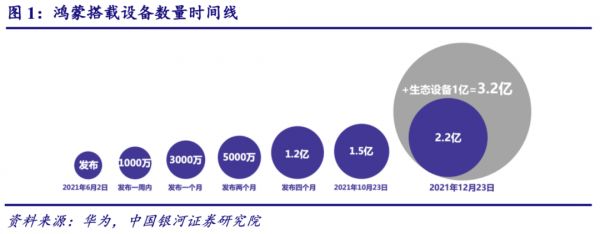 不过,银河证券认为,以目前搭载量增长速度来看,对鸿蒙跨越操作系统生死线持乐观态度。