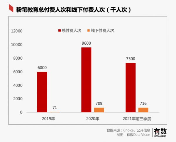 就数据来看,线下培训确实赚钱:截止2021年9月底,粉笔线下课付费人次71.6万人,仅占总付费人数的9.8%,并且贡献了49.8%的营收,首次超越线上。