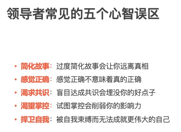 Jennifer Garvey Berger还写了另外一本书叫《走出心智误区》, 薄薄的一本书,较《领导者的意识进化》容易读。我把她提出的五个心智误区分享给所有创业者,也给大家一些建议: