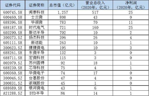 图7:国内功率半导体上市公司一览,资料来源:万得资讯