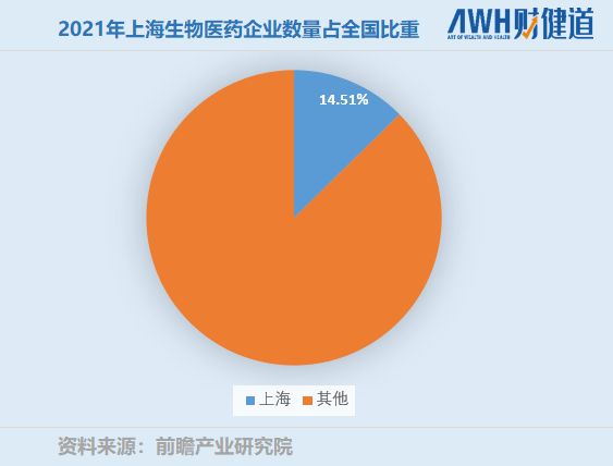 2021年仅上海一处的生物医药企业的数量就占全国近15%。截至2020年初,国内398家医药健康类上市企业,上海占39家,累计总市值6628亿元,排名第一,其后是北京、香港。