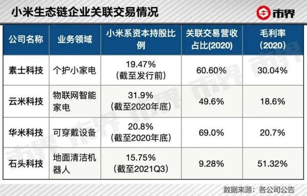 在“去小米化”之路上走得较为彻底的是主营地面清洁机器人的石头科技。2018年到2020年,石头科技对小米集团的关联交易占营收的比重分别为50.17%、34.27%、9.28%,毛利率分别为28.79%、36.12%、51.32%。这大概可以说明,对小米的依赖越小,盈利能力越强。