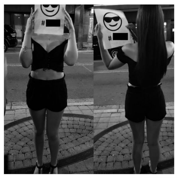 在知情、自愿的情况下,总共200多位女性接收了问卷调查(最终进入统计分析的有效数据出自185位女性),并拍摄了一张她们当晚出门玩的穿搭照片。研究者回去之后也会对实验参与者身体的裸露程度进行“打分”。某个身体部位暴露了就标为1,反之则为0。