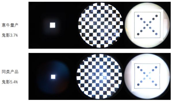 VR光学模组领域,惠牛科技持续升级低鬼影性能和量产工艺,新品将超短焦方案的鬼影降到3%左右,达到跟传统菲涅尔方案相当的水平,并积累近20篇降鬼影相关的专利。对比同类产品,在客观测试,以及主观体验方面,惠牛的低鬼影模组的显示画面更清晰、更纯净。