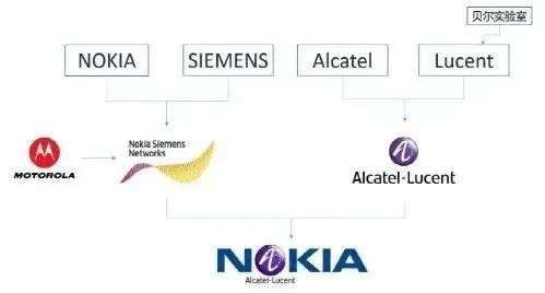 在手机业务如日中天的时候,诺基亚曾将电信设备业务与西门子合并成立了“诺西公司”。在失去手机后,诺基亚开始了电信部门的重建。2013年,诺基亚购买了西门子持有的诺西公司的另一半股份。2015年,诺基亚又用156亿欧元收购了电信巨头阿尔卡特-朗讯公司,从而将通信业界拥有至高地位的贝尔实验室收入囊中。