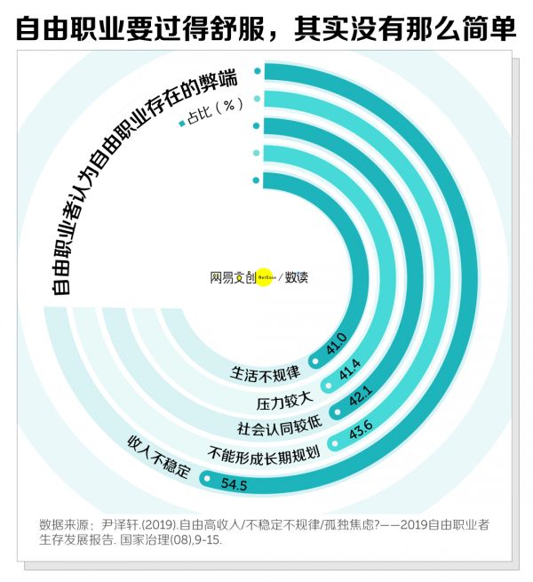 而且成了自由职业者后,许多人的工作也没有变得更轻松。超过 40% 的自由职业者都认为工作压力大、生活不规律 [4]。