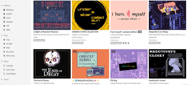 「在 Itch.io 平台(Bitsy 游戏发布的主要平台)寻找游戏更像是走进一个社区艺术画廊而不是一家商店,任何人都可以被邀请展示他们的作品,为更多样化的开发团队开放场地,而免费游戏的激增使人们不再认为这是一个纯粹的交易空间——你可以为了探索而探索。」