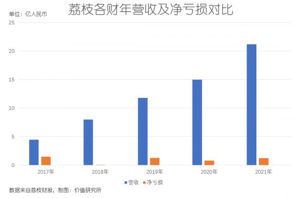 数据显示,荔枝2021年全年净营收21.2亿,同比增长41%,四季度实现892万净利润,是其首次实现GAAP盈利。然而,2021年全年荔枝净亏损依然高达1.27亿,较2020年进一步放大。