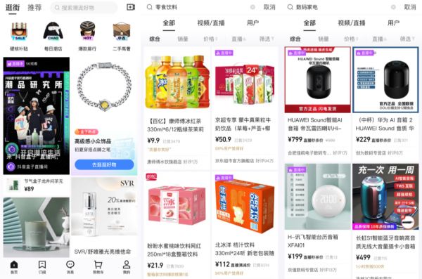 “盒子”目前只有“硬核补贴”、“时尚潮流”、“美妆爆品”和“二手高奢”四大类,但也为更多类目保留了空间,比如,在抖音盒子中搜索零食饮料、日用百货、数码家 电也能出现百草味、隅田川、心相印和OPPO。