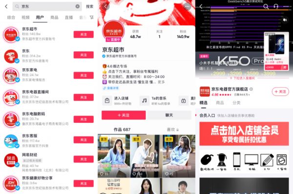 京东在抖音上的相关账户