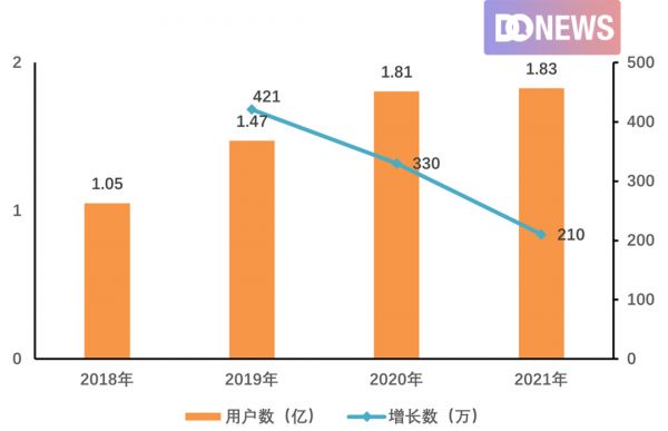同时增长放缓的还有在线音乐服务月活用户数。根据财报,截止到2021年12月31日,其在线音乐服务月活用户1.826亿人,相较于2020年的1.805亿人只增加了210万人,而其在2019年和2020年的月活用户增长分别为421万和330万。