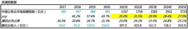 倘若以此估算,腾讯云2021年的营收情况,起码和华为云处在同一量级。而根据海豚投研估测,腾讯云2020年和2021年的营收分别为210.6亿、307.0亿元,增速放缓,但依旧处在国内第二云厂商的位置。