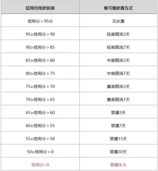 具体规则为: 当信用分>95分时,账号状态正常;当账号≤95分时,将会触发信用分阶梯式的对应处罚,如账号会呈现“账号被轻度限流”或“暂不可播”等非正常状态。