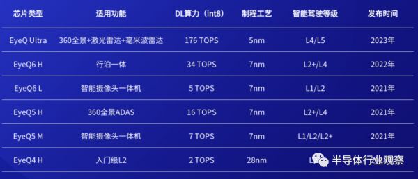 Mobileye EyeQ部分芯片