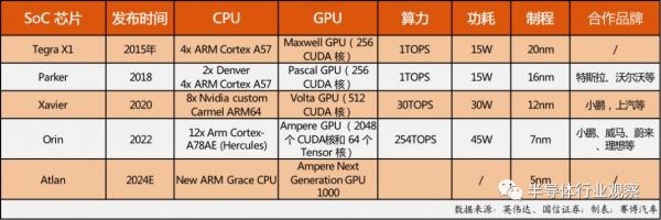 英伟达部分汽车芯片