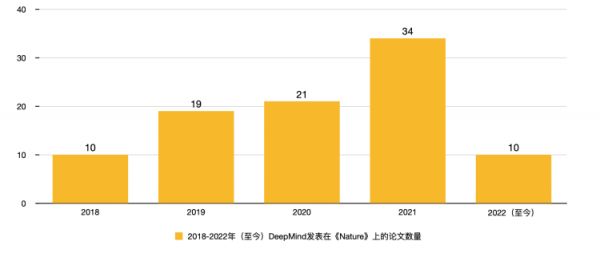 品玩统计了DeepMind近几年在《Nature》发表的论文情况。到目前为止的两年时间内,DeepMind在《Nature》上共发表了60篇论文,比之前三年的论文总数还要多接近10篇。而在这60篇论文中,仅2022年的三个月里就占了10篇。