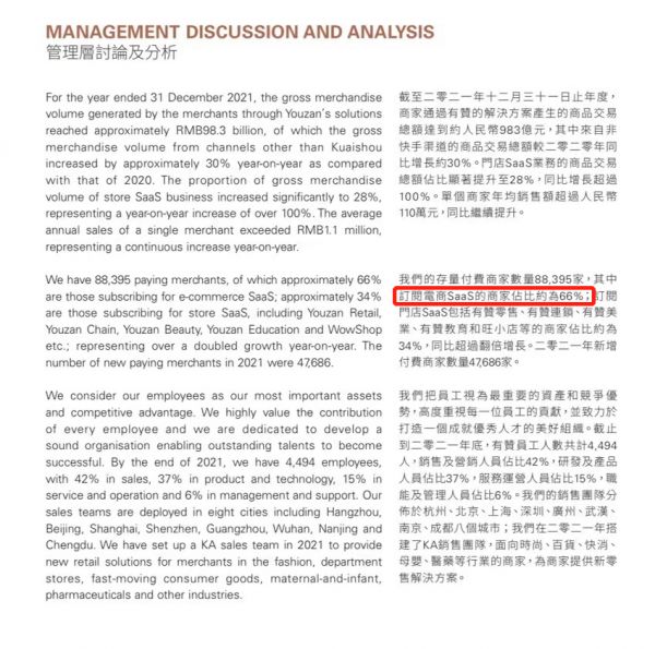 2021年员工人数,图源有赞财报