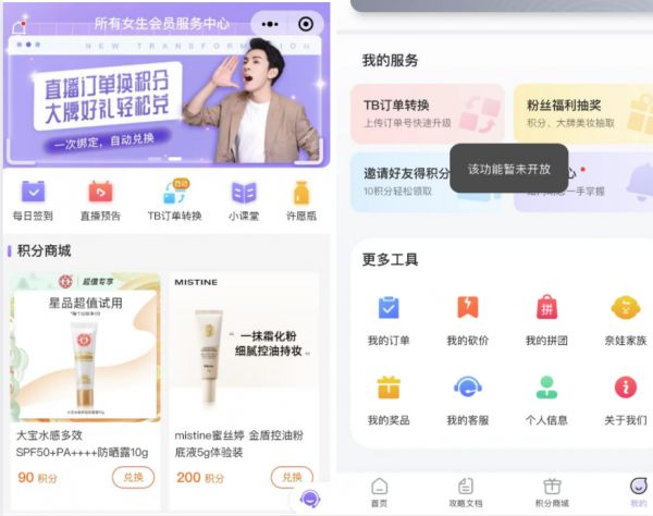 交个朋友公司也创建了“交个朋友会员中心”小程序,通过输入近90天在“交个朋友”公司旗下直播间产生的订单,就可以兑换积分,兑换比例是1:1。