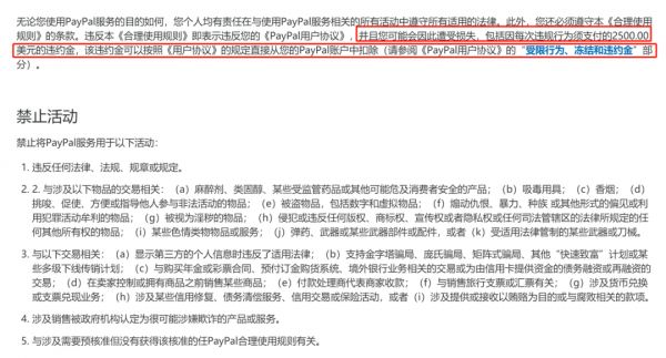 (PayPal用户协议中的《受限行为、冻结和违约金》)