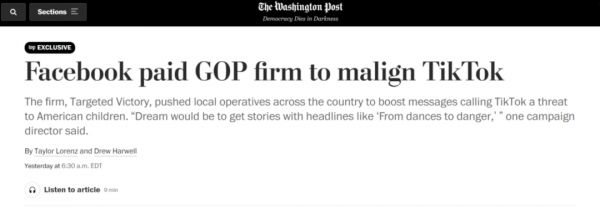 《华盛顿邮报》长文批评Meta雇佣公司攻击TikTok