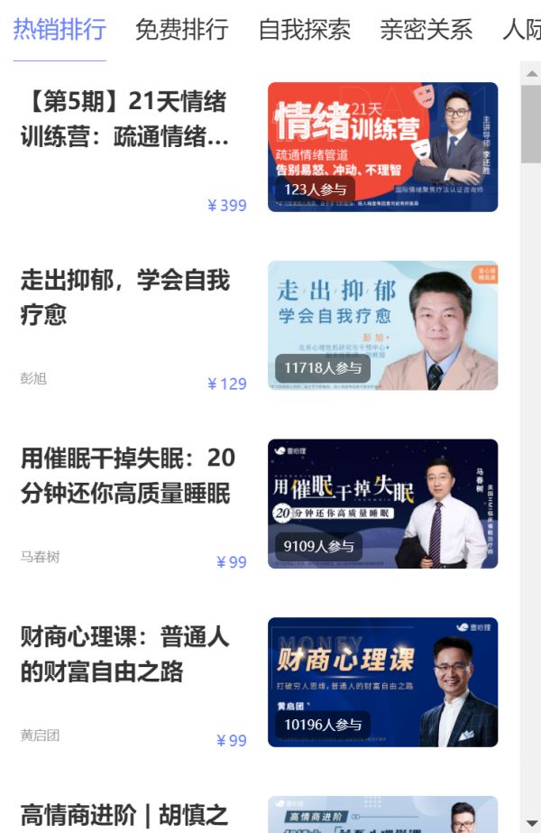 (壹心理推出的大量付费心理课程)