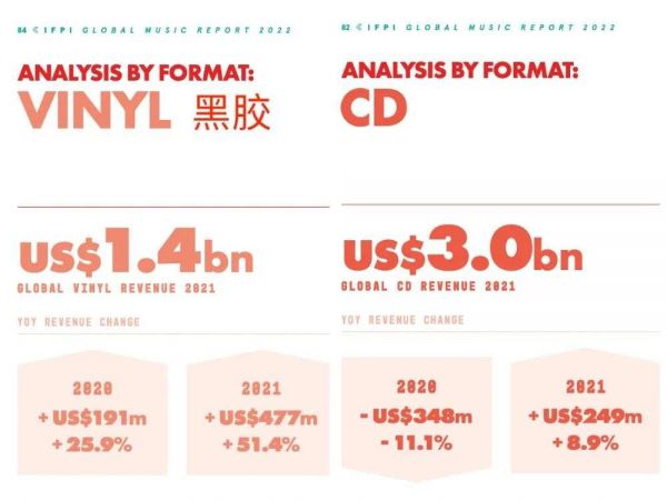 国际唱片业协会IFPI发布的《全球音乐报告2022》显示,2021年,全球CD销售收入增长了8.9%,二十一年来首次出现增长。