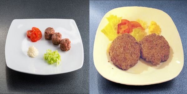 一份牛排只有丸子大,另一份有汉堡肉饼那么大。研究结果与番茄沙拉一致,尽管两份牛排的摆盘方式相仿,但被试们认为左边的小份牛排看上去更加高级,摆盘更加优雅。