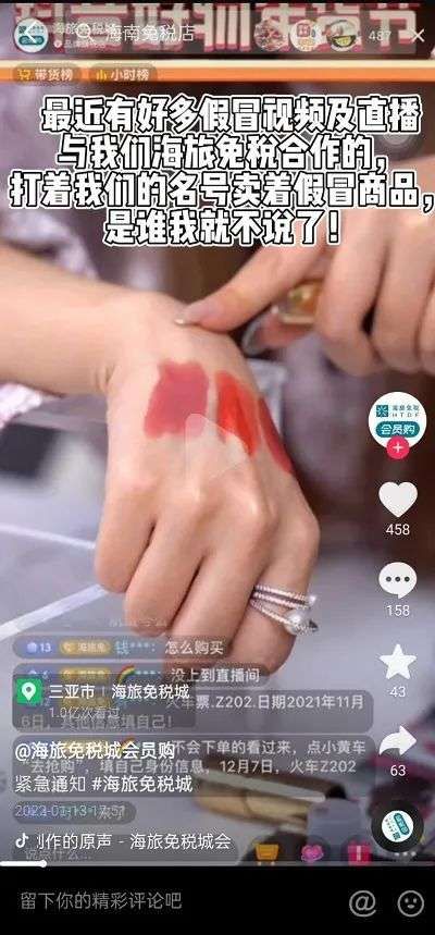 无独有偶,今年1月13日,@海免免税城会员购发布抖音短视频亲自“打假”,表示部分视频和直播间假冒与其合作,打着官方的名号卖假冒商品。