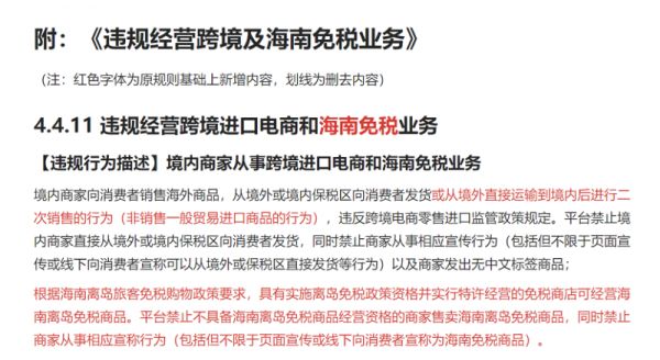 规范指出,抖音平台禁止不具备海南离岛免税商品经营资格的商家售卖海南离岛免税商品,同时禁止商家从事相应宣称行为(包括但不限于页面宣传或线下向消费者宣称为海南免税品)。