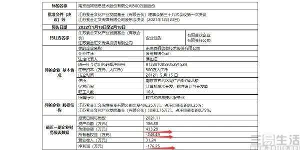 日前江苏产权市场网发布的公告显示,西祠胡同所属公司“南京西祠信息技术股份有限公司”以1元的挂牌价格,转让100%股份(共500万股),转让日期截止2022年4月18日。并且此前该公司曾发布过一轮转让公告,但并未征集到受让方。