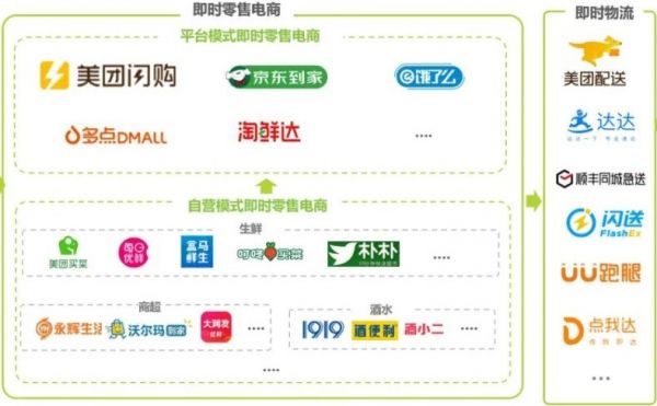 当前,即时零售电商分为两个模式,一个是平台模式,比如美团闪购、饿了么、京东到家等;另一个是自营模式,比如盒马鲜生、朴朴超市等。