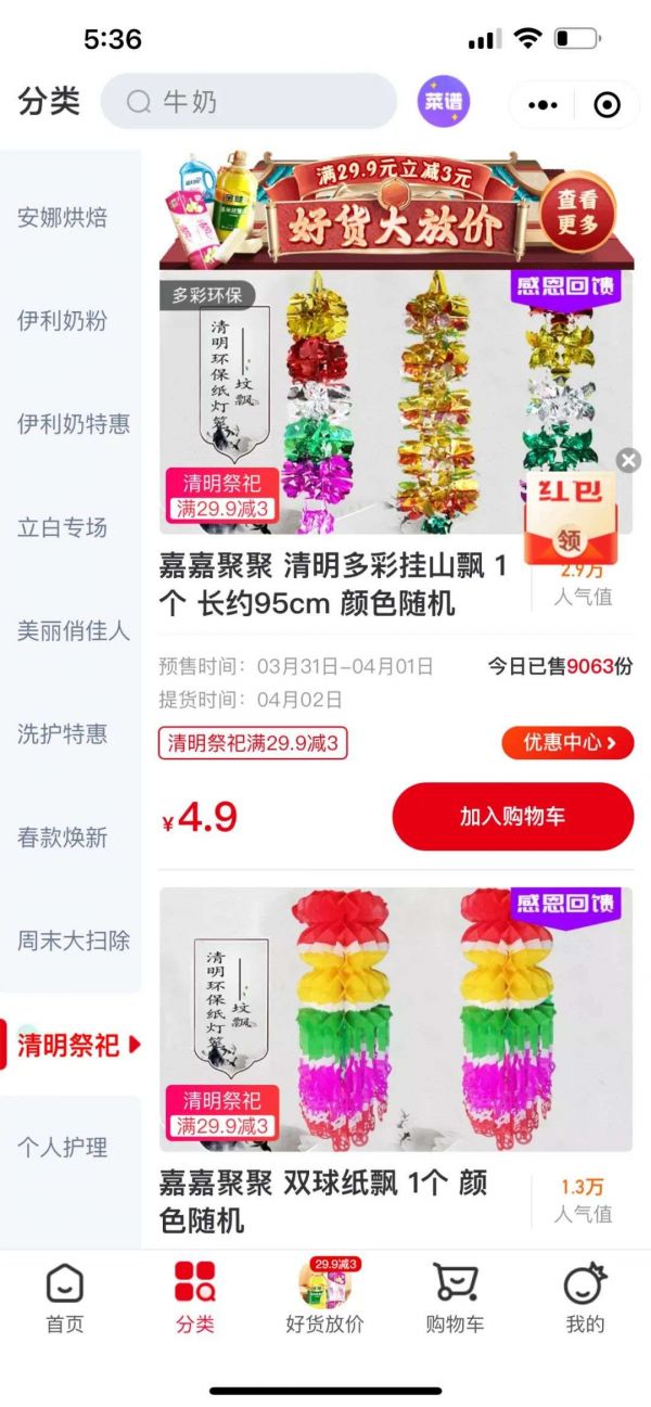 4月1日前后,兴盛优选还推出了清明节节令祭祀品。