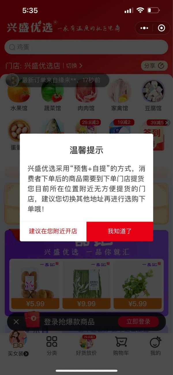 除了新上线的服饰,当前兴盛优选在生鲜、日用百货外还囊括了家纺家具、数码家电和文教用品,朝着“线上超市+次日自提”的方向发展。