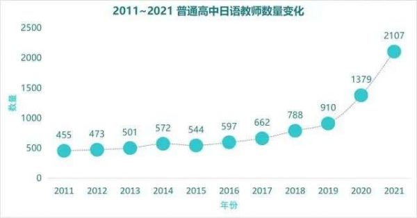 2011年教育部统计全国普通高中日语教师数量仅455人,到了2021年,已有2107人,11年间数量增长3.6倍。一个重要原因是随着“一带一路”的建设发展,国家迫切需要小语种人才。地方政府对于高中日语班有一定的扶持,高中也随之招聘日语老师。对跨境电商行业而言,这也是一股潜在的人才力量。