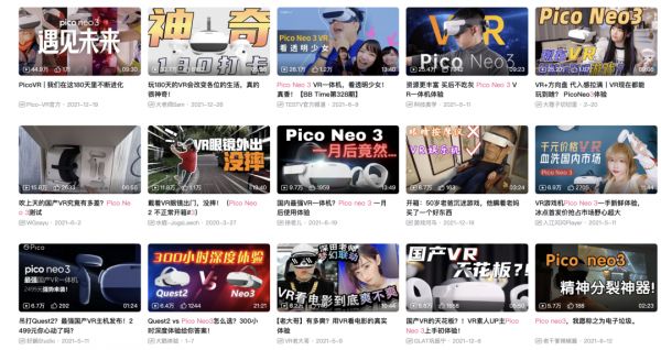 你能在微博看到热搜榜上有关Pico的话题,在抖音上看到各大明星玩Pico VR一体机的视频,甚至还能在B站上看到数十个UP主发布有关Pico Neo 3的视频......可以看到,字节跳动接管后的Pico正变得更加活跃和出圈。