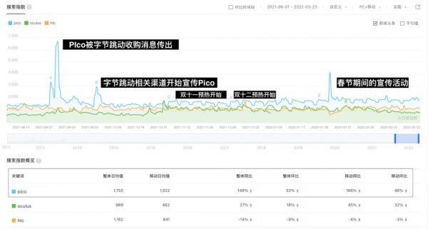 ▲从2021年8月1日到2022年3月23日,Pico的搜索指数变化