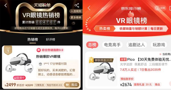这并非一时的火热,时至今日,Pico也处于京东、天猫等电商平台VR销售榜榜首的位置。想来,字节跳动调整2022年Pico的出货量也是因为Pico势头正猛。