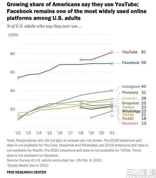 并且在这份调查报告中也指出,YouTube与Facebook仍然是海外互联网中占据主导地位的平台,在被调查者中有81%使用过YouTube、69%使用Facebook。