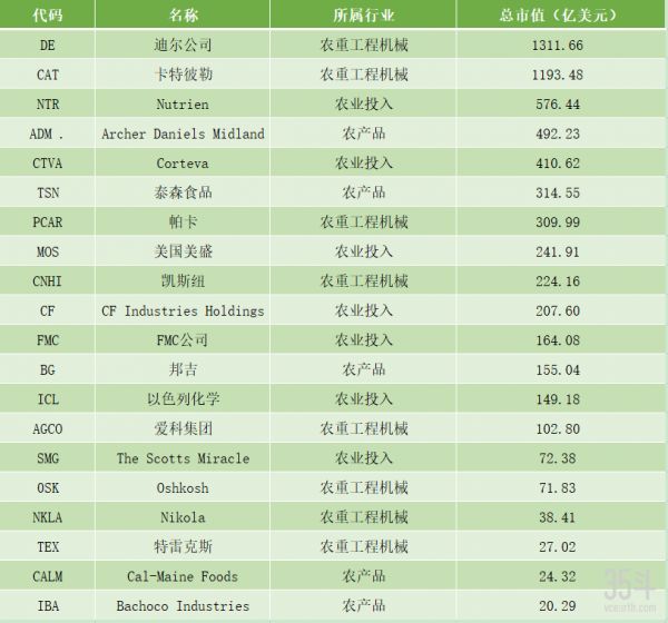 美股排名前20农业公司盘点:约翰迪尔、卡特彼勒、泰森食品等榜上有名