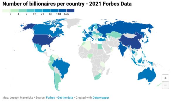 2.62%的亿万富翁是在这五个国家赚到钱的。