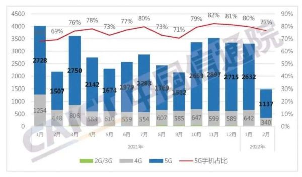 最显而易见的,便是国内市场手机出货量再度下降,难见回暖趋势。根据中国信通院公布的报告,2022年1月~2月的手机市场总出货量共计4788.6万部,同比去年下降了22.6%,其中2月份的销量更是只有1137万部,来到了近14个月的最低谷。不论何等体量,厂商都不太好过。