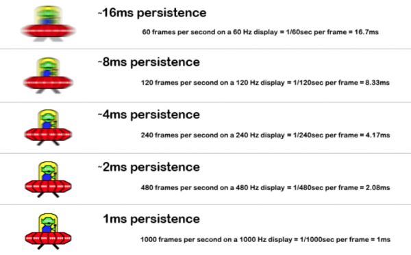 如果是同时拥有游戏本和电竞显示器的玩家,只要分别尝试过在游戏本自带屏幕和电竞显示器上游玩同一款FPS对战游戏,那么很轻松就会发现两者的体验差距。游戏本普遍3ms甚至更高的响应时间,让屏幕上的残影停留时间变得更长,加上高帧率更是会让这种情况变得更加严重。