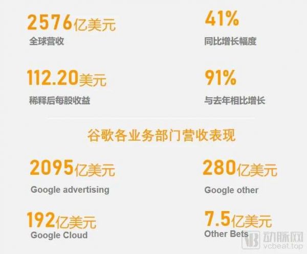 谷歌的母公司Alphabet在近期发布的年报中公布了去年的营收数据。据年报显示,在2021年,公司营收2576亿美元,同比增长41%;归属于母公司普通股股东净利润为760.33亿美元,同比增长88.81%。