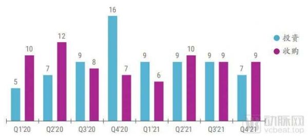 包括谷歌在内的美国5大科技企业(谷歌、微软、亚马逊、苹果和Facebook),整体的收购趋势开始放缓。对外的股权投资数量在2020年的波动之后,2021年开始趋于稳定。