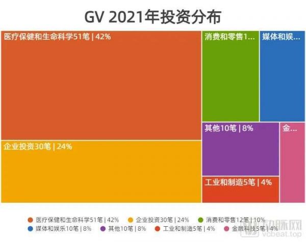 因此,单看谷歌本身在2021年的投资平平无奇,也就是对海外市场的一些必要补充。但如果将GV的投资项目进行分类,就会发现其中有接近一半的项目投在了医疗健康和药物开发领域。