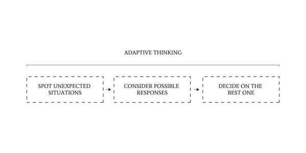 一种简便的理解方式是把适应性思维看作是打了类固醇的批判性思维。或者如果我们可以重新诠释《刻意练习》那本书的作者说过的话,适应性思维是这样一种能力,即能够识别意外情况,快速考虑各种可能的反应,并决定出最好的一个。