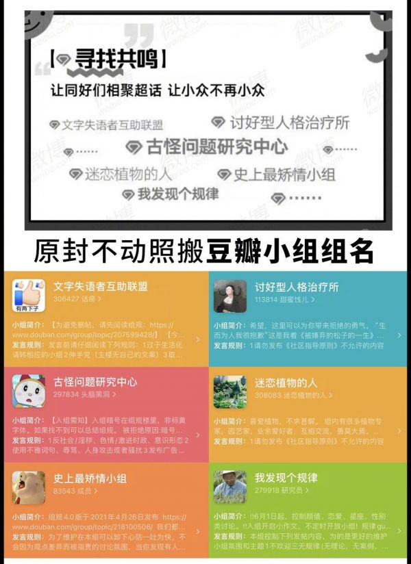 在微博挖角豆瓣组长作运营时,不少豆瓣用户也在评论区留言,“豆瓣小组的核心并非组长,而是高质量用户,再依靠她们的优质话题去吸引更用户留存。”组长在豆瓣小组仅是维持秩序的角色,并非意见领袖,甚至妆组、拼组等多个大组的组长,都因不当发言被用户推翻了。
