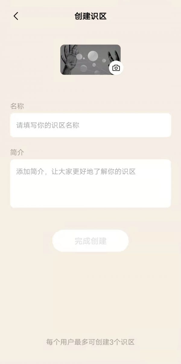 如果没有你喜欢的内容,用户也可以自己创建识区,成为区长,每位用户最多可创建 3 个识区。